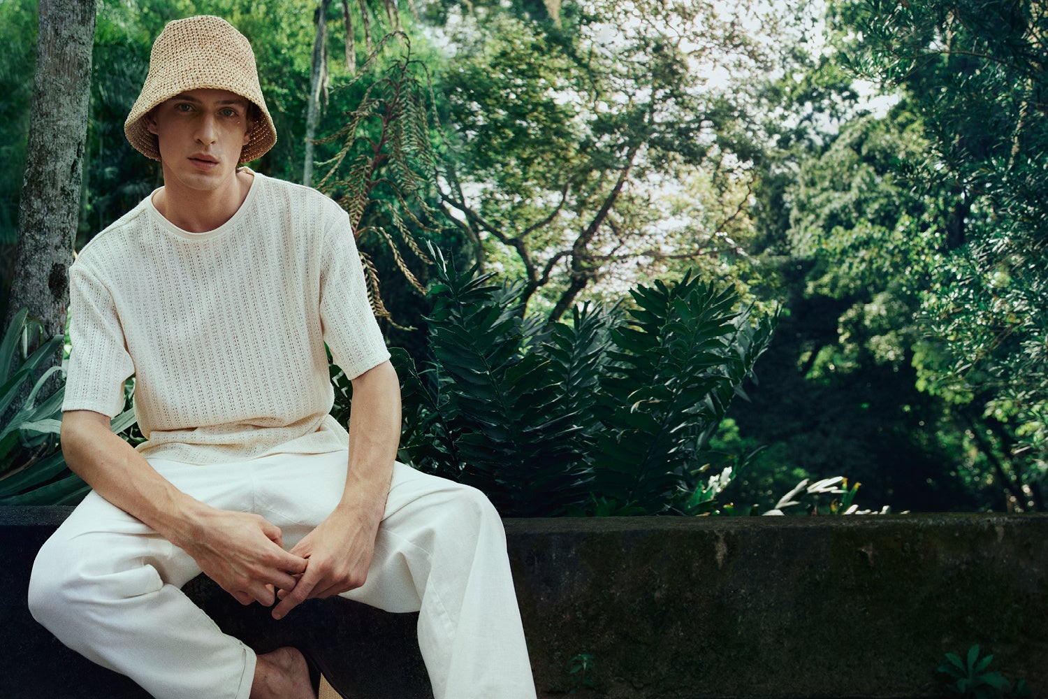 「夏の着こなしは本来ゆったりとしたものですが、私たちはコレクションに洗練された雰囲気を取り入れたいと考えました。ソフトなテーラリングとシャーリングにスポットライトを当て、特に光沢と質感のある素材を使用し、よりあか抜けた表情豊かな仕上がりになったと思います」H&Mメンズウェア・デザイン責任者、ロス・ライドン(Ross Lydon)