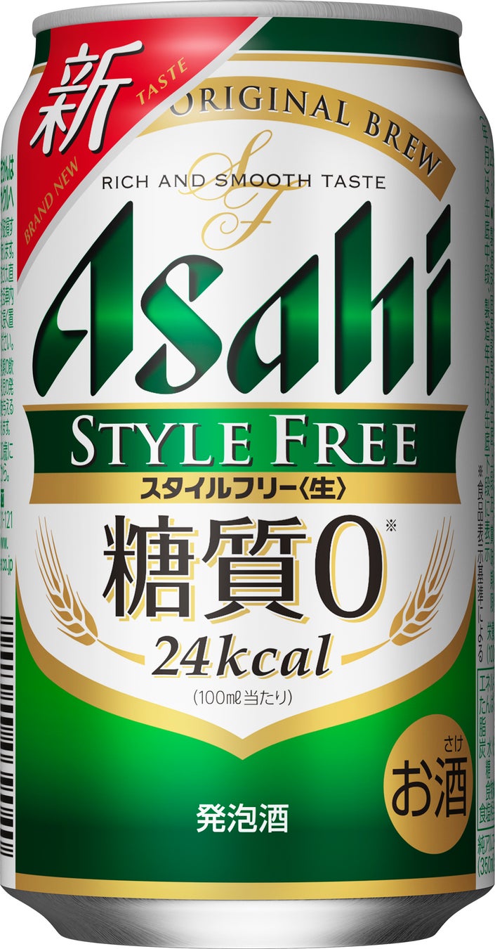 『アサヒスタイルフリー<生>』は、すっきり爽快な飲みやすさとしっかりとした麦の味わいが特長の“糖質ゼロ※”の発泡酒です。今回のクオリティアップでは、大麦の使用比率を上げ、麦芽エキスを新たに採用することで、ビールらしい香りや味わいをより高めました。パッケージは従来のデザインをベースに、糖質などに配慮したビール類の飲用者に関心が高い「カロリー」表示の視認性を高め、缶体上部に“新”アイコンを大きく入れることでクオリティアップを訴求します。