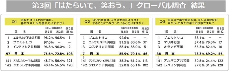 ■「はたらいて、笑おう。」グローバル調査 ―誰かの役に立っている実感の設問で日本は142カ国中7位―