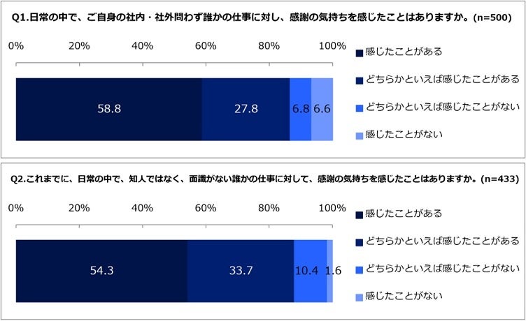 Q1.日常の中で、ご自身の社内・社外問わず誰かの仕事に対し、感謝の気持ちを感じたことはありますか。