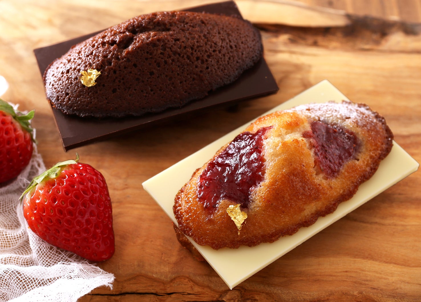 ブルトンヌで人気の焼き立てフィナンシェに、ビターで香り高いベルギー産チョコレートの板チョコをはさんだ、特別な一品。香ばしく風味豊かなフィナンシェにタブレットショコラのぱりっとした食感がアクセントです。〈苺とホワイトチョコ〉と〈ショコラ〉の 2 種を、各日 各店 50 個限定で販売します。