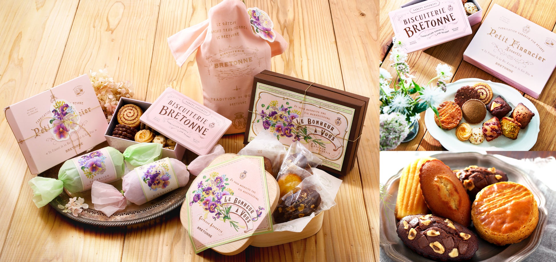 フランス・ブルターニュの美味しさをお届けする焼き菓子専門店「ビスキュイテリエ ブルトンヌ」(https://www.bretonne-bis.com/)では、「Le Bonheur à Vous~幸せを運ぶ春の焼き菓子~」をテーマに、良質なバターの風味にショコラやベリーなどを合わせた春限定の焼き菓子やクッキー缶、すみれやビオラなどのお花のブーケのパッケージが華やかなアソートギフトなどバラエティ豊かに展開いたします。ギフト商品は 2 月15 日(水)より、焼き立て商品は 3 月1日(水)より順次販売開始します。(※焼き立て商品は店舗のみ)