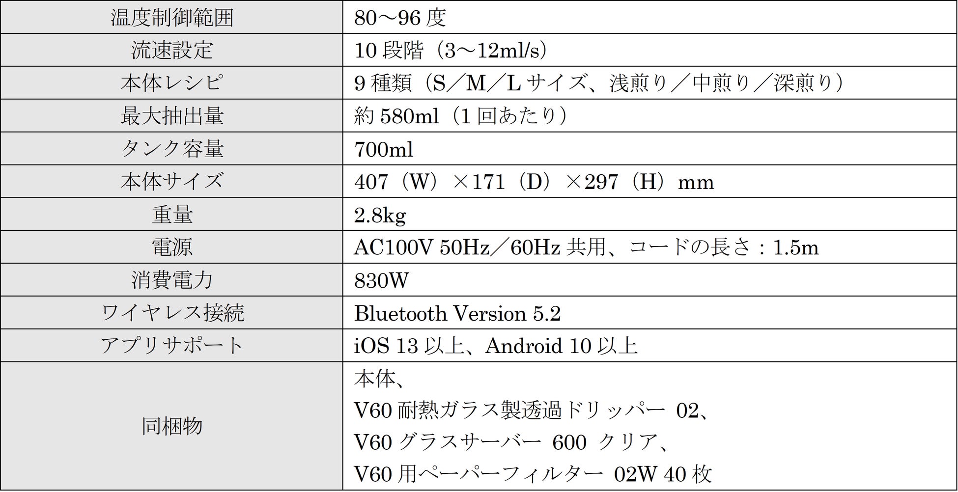 2017年に設立されたIoTコーヒー機器専門メーカーで、象徴的なV60ドリッパーで最もよく知られている、耐熱ガラス製品の老舗メーカーHARIOの子会社です。先進的なIoTテクノロジーとハンドドリップの職人技術を組み合わせることで、風味豊かで素晴らしい味わいを届ける、今までにないIoTコーヒーマシンを開発・提供しています。