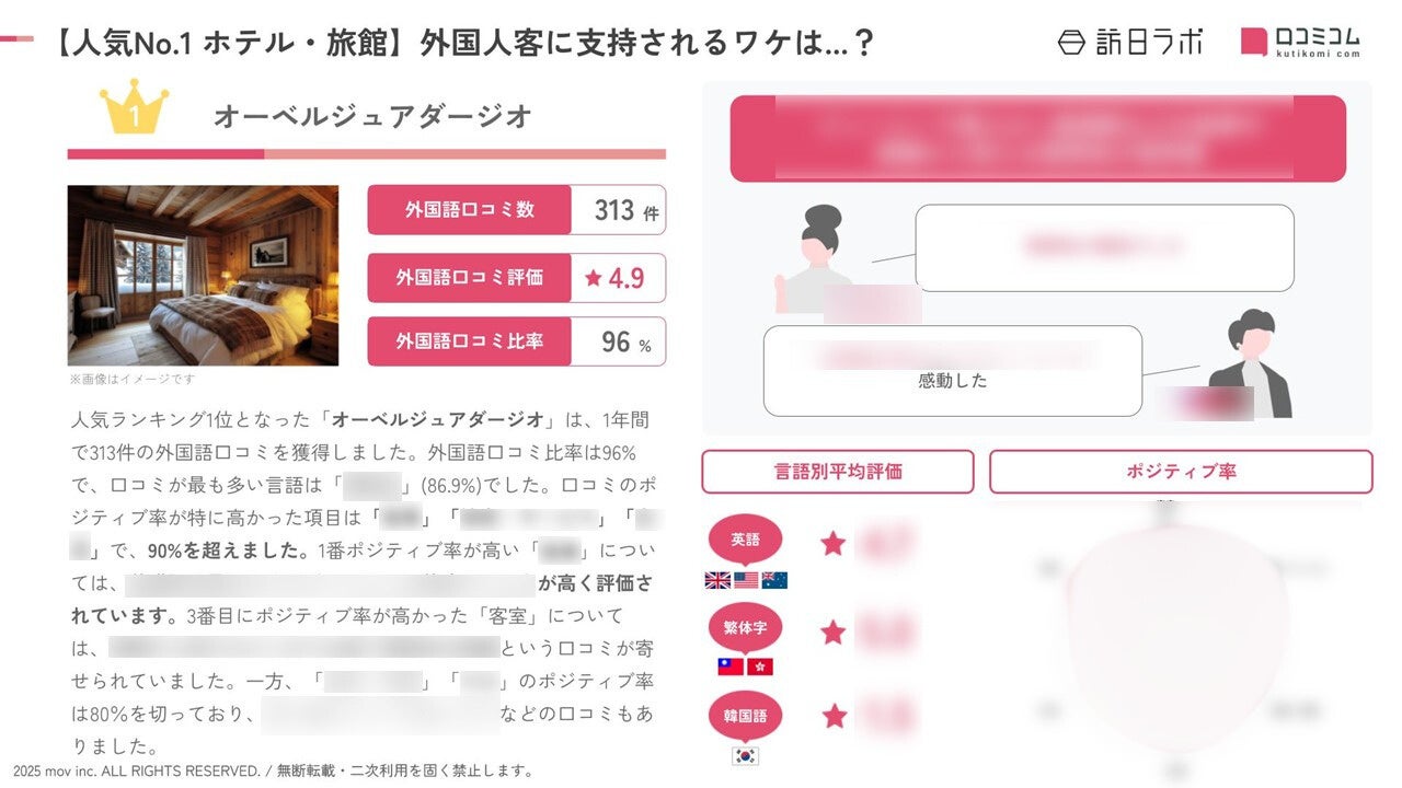人気ホテル・旅館に寄せられた外国語口コミを分析