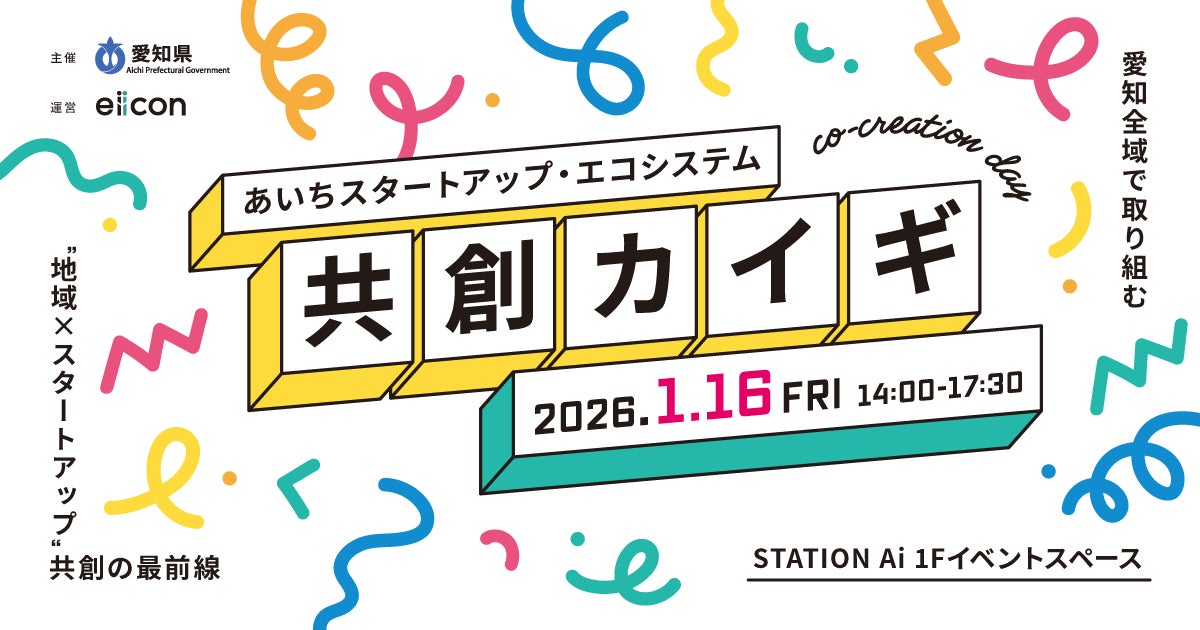 日本最大級のオープンイノベーションプラットフォーム「AUBA(アウバ)」を運営する株式会社eiicon(エイコン 本社所在地:東京都文京区後楽、代表取締役社長:中村 亜由子、以下「eiicon」)は、あいちスタートアップ・エコシステム形成の促進を目的に、「あいちスタートアップ・エコシステム 共創カイギ」を、2026年1月16日(金)、STATION Ai(名古屋・鶴舞)にて開催します。