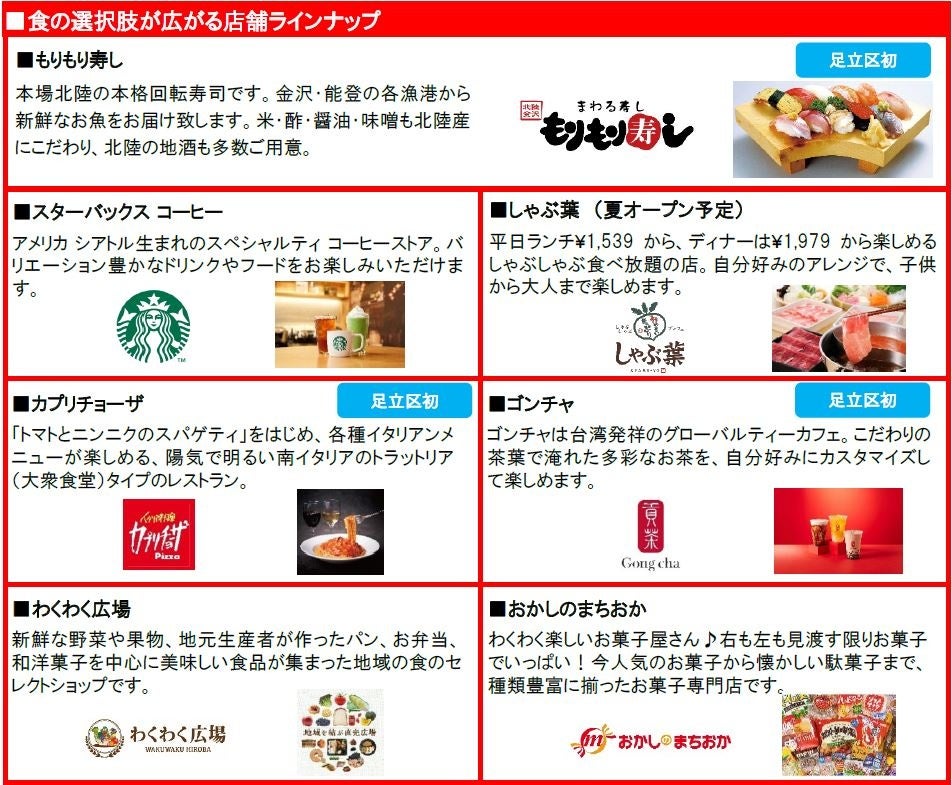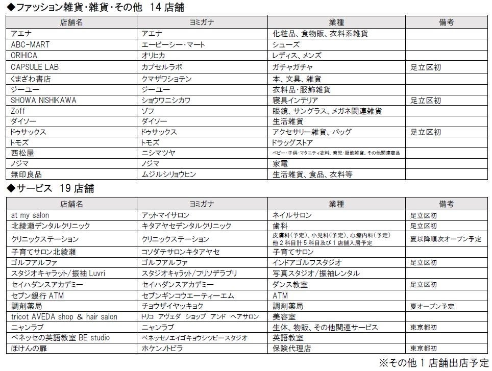 <添付資料①> 三井ショッピングパーク ららテラス北綾瀬 出店店舗一覧