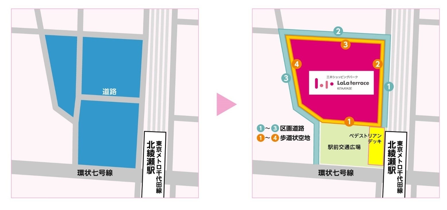 ・東京メトロ千代田線北綾瀬駅直結のライフスタイル型商業施設「三井ショッピングパーク ららテラス北綾瀬」のグランドオープンが2025年6月24日(火)に決定。 ・東京都初や足立区初出店となる店舗を含む全51店舗が出店。綾瀬エリア初大型フードコートも誕生。 ・足立区が整備する駅直結のペデストリアンデッキが本施設に接続。北綾瀬駅前交通広場も隣接し、利便性の高いアクセスを実現。 ・北綾瀬駅周辺におけるまちづくりの一環として、駅前のにぎわいや快適な歩行空間の創出に貢献。 |