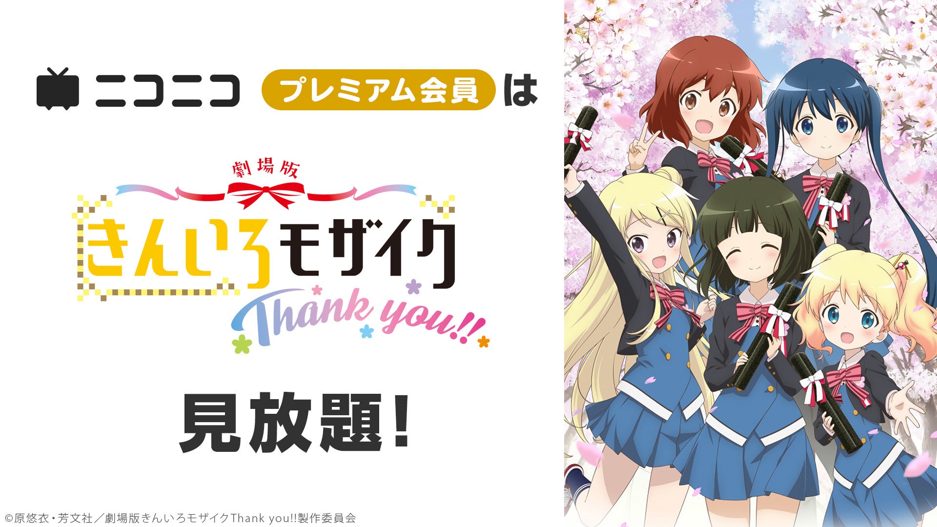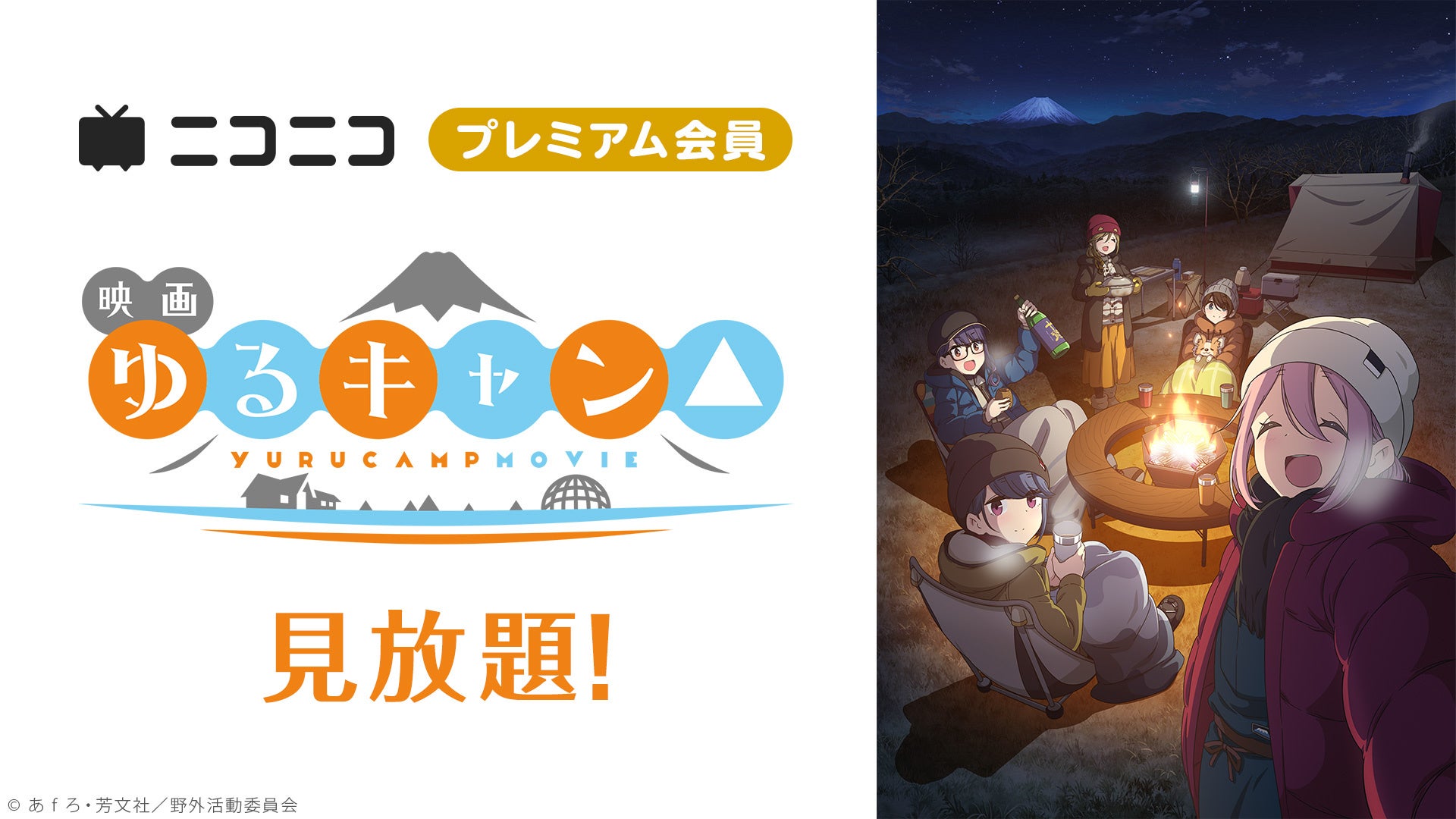 ニコニコ動画では、 11月から「メイドインアビス 烈日の黄金郷」、劇場版「きんいろモザイクThank you!!」、「劇場版異世界かるてっと~あなざーわーるど~」、「ガールズ&パンツァー バーチャルライブ、はじめます! ~オオアライで全員集合!!!!!!!~」、映画『ゆるキャン△』の5作品を含めた、計17作品のニコニコプレミアム会員見放題を行います。