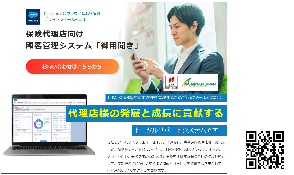 保険業界においては、お客さま本位の業務運営「フィデューシャリー・デューティー」の実現に向け、顧客管理・CRMシステムの重要性が増しております。当社が提供する保険代理店向け顧客管理システム「御用聞き」は、単なる顧客情報管理に留まらず、当社が開発したACPの他の商品と相互に連携させることで、保険代理店の皆さまの、業務効率化と生産性向上に貢献するシステムとなっております。
