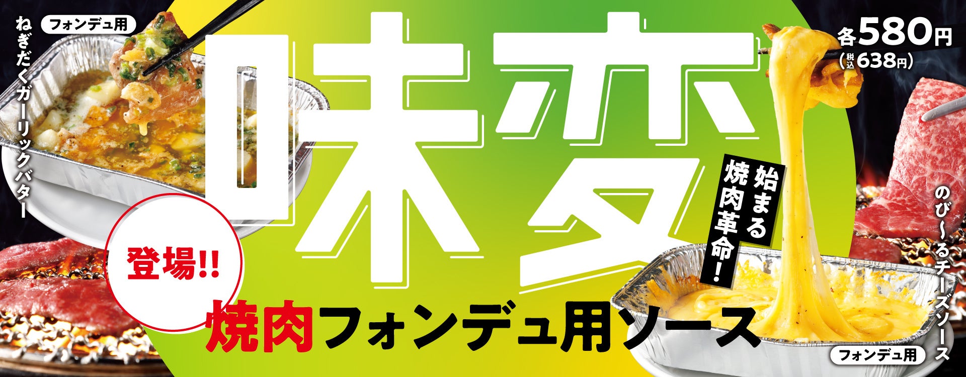 期間限定メニューは「楽しさ」と「美味しさ」にこだわった10種で、「焼肉」の時間に「楽しさ」をプラスする焼肉フォンデュ用「ねぎだくガーリックバター」と「のび~るチーズソース」、「プリンパフェ」、「チャミスルトクトク」、また「美味しさ」にこだわった「和牛カルビ(たれ)」、「和牛の生ハムユッケ」、「牛骨スープの韓国うどん(カルグクス)」、「牛骨スープのスンドゥブチゲ」、「チーズたっぷり!石焼ビビンパ」、「石焼チーズソットク(ソーセージ&トッポギ)」です。