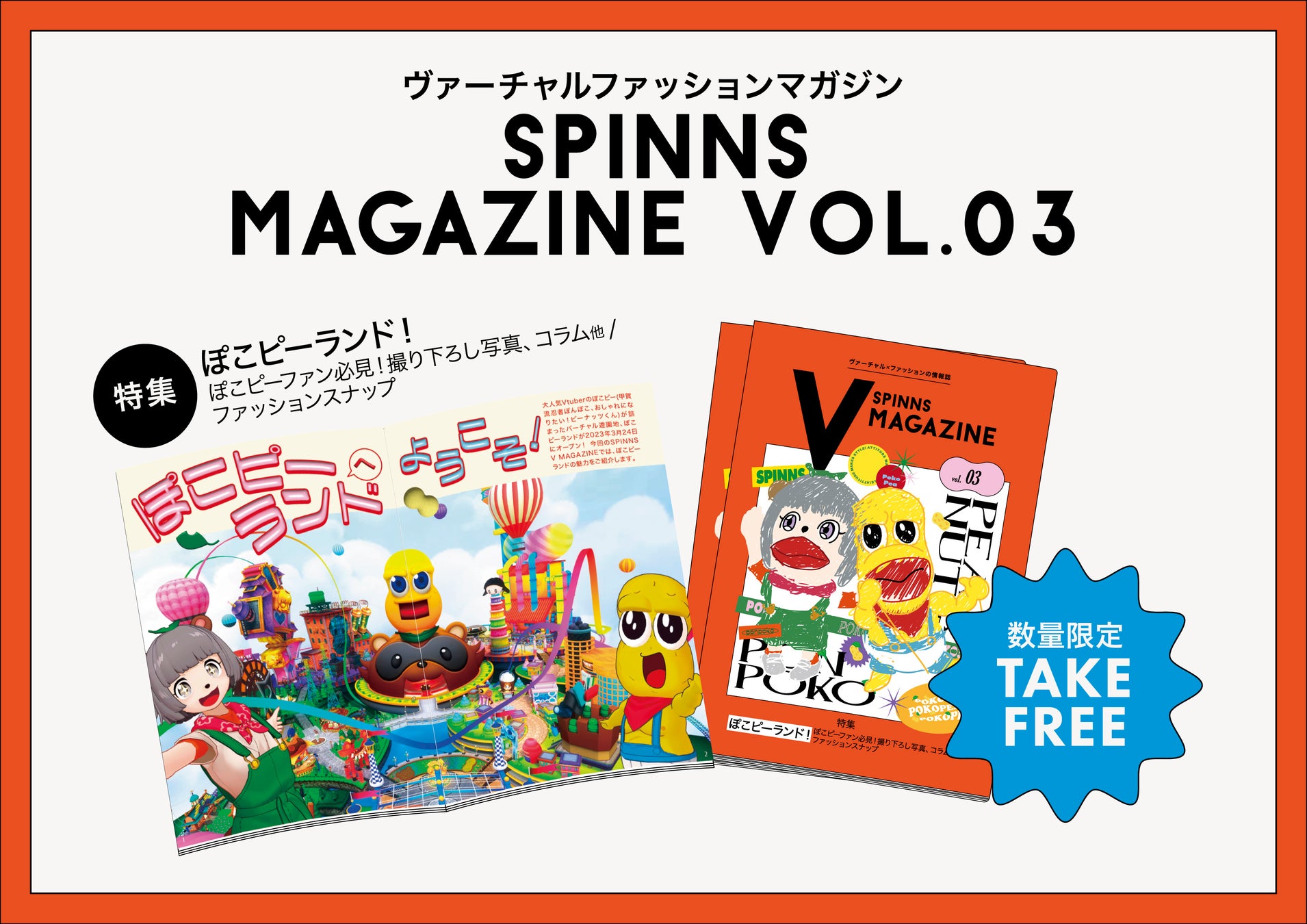 バーチャルファッションマガジン「SPINNS V MAGAZINE」の第3号が発行決定!表紙&特集に「ぽこピー」が登場!