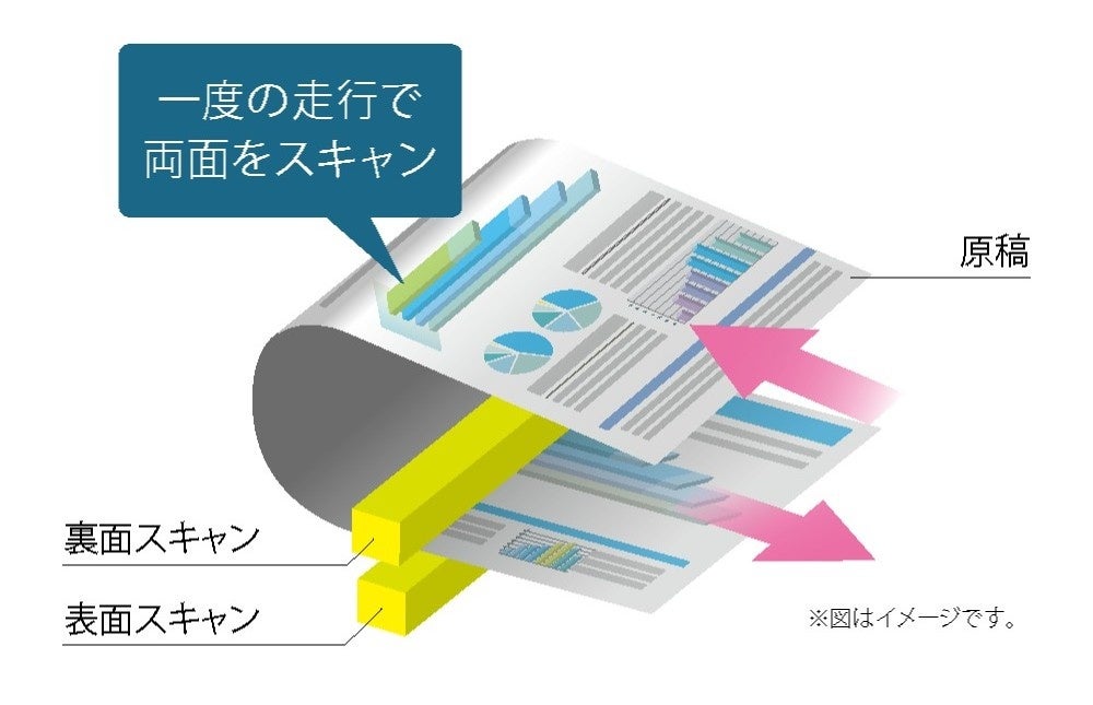 ・・・一度で両面の読み取りができる両面同時スキャン対応。(対象機種:MFC-L8970CDW、MFC-L8730CDW)スキャンしたデータは、パソコンを使わずに【※5】そのままGoogle Driveやboxなどの各種ウェブサービスに保存して、外出先で確認することも可能だ。