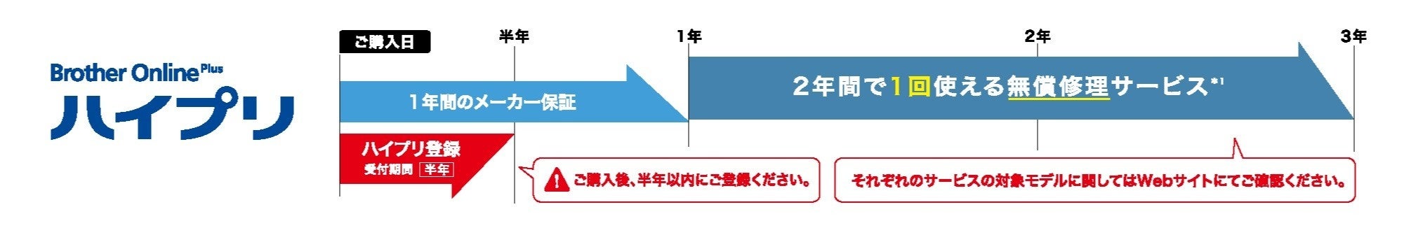 ・・・ブラザーオンラインプラス「ハイプリ」へのご登録で、1年間のメーカー保証に加えて、ブラザー独自の延長保証サービス【※6】が無償で利用できる。保証内容を延長することができ、長く安心して使用可能だ。