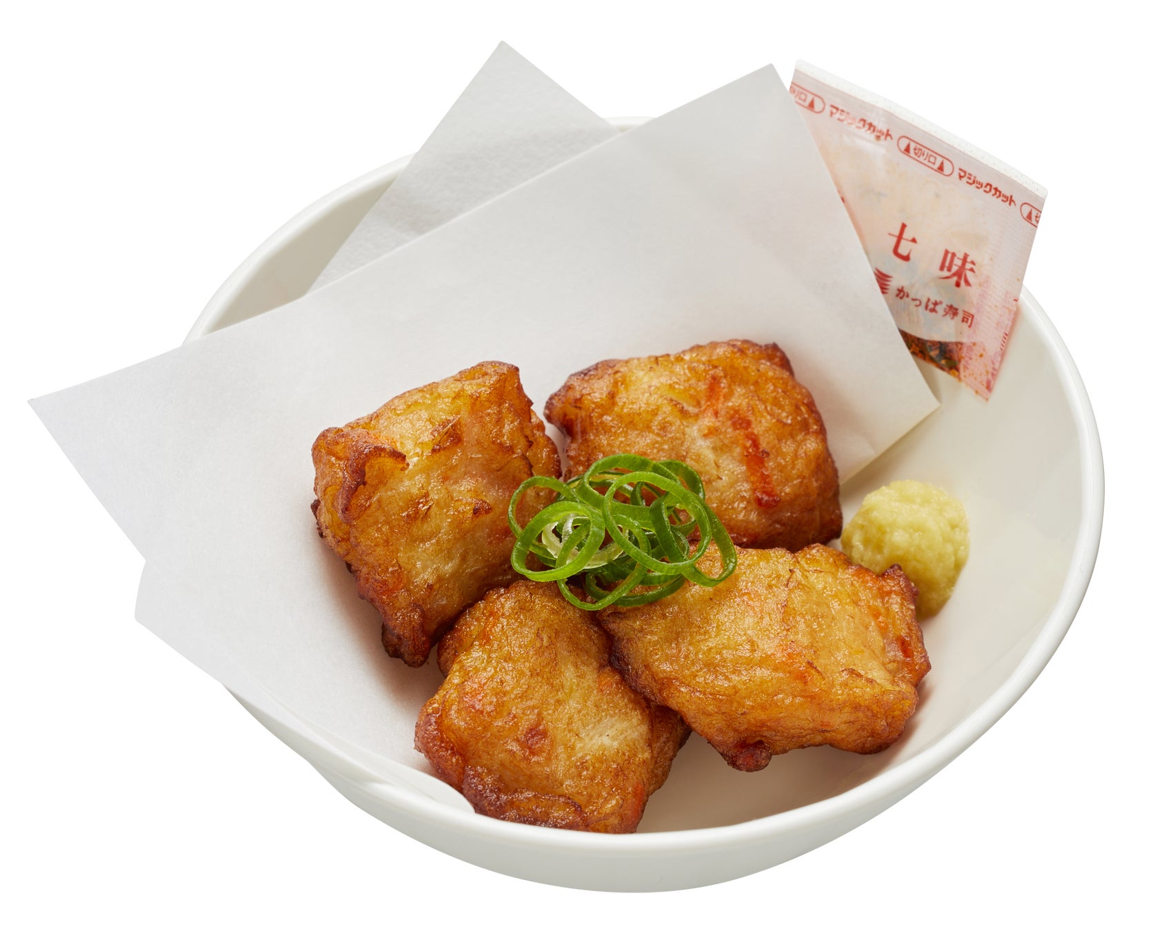 スギヨ社の加賀揚げを使用。30年以上愛されるベストセラー商品です。魚肉と野菜を黄金比で混ぜ合わせて作られています。