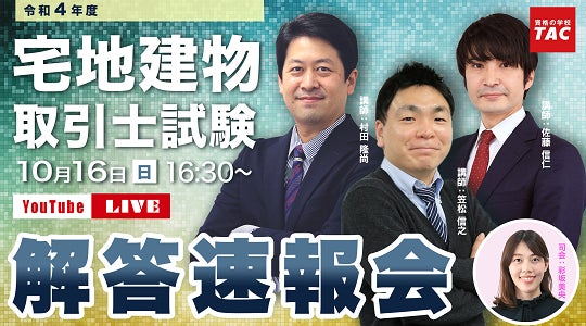 - 宅建士本試験 解答速報会YouTube LIVE配信!