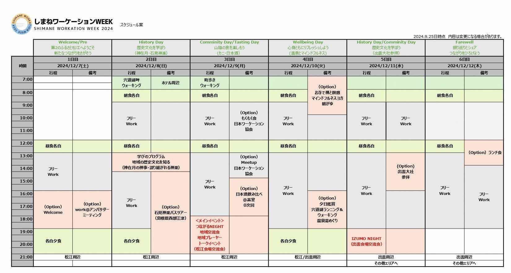 「ワーケーションを楽しめる一週間」として期間中にさまざまな予定が組まれています。
