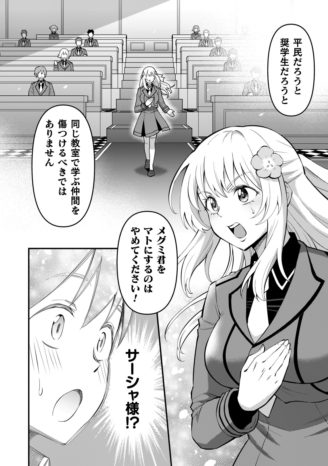 帝国の名門校に奨学生として通うも、平民という身分からイジメの標的にされていたメグミ。