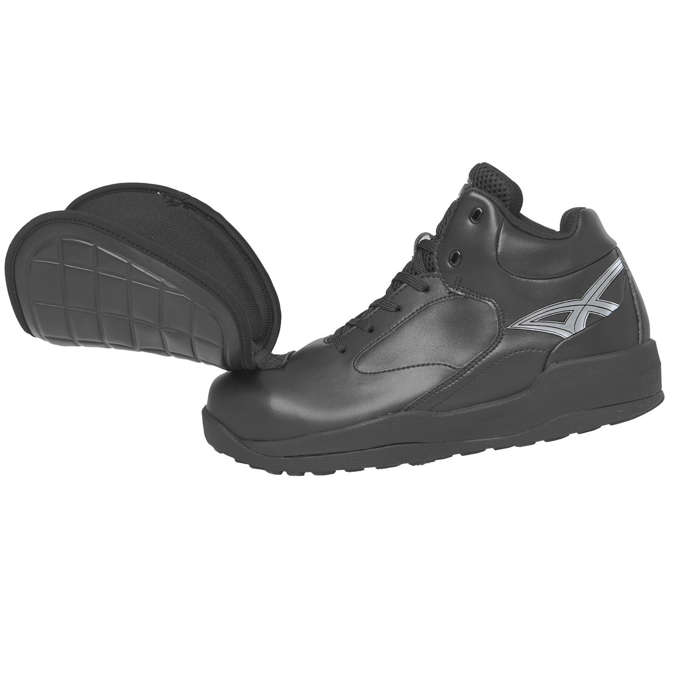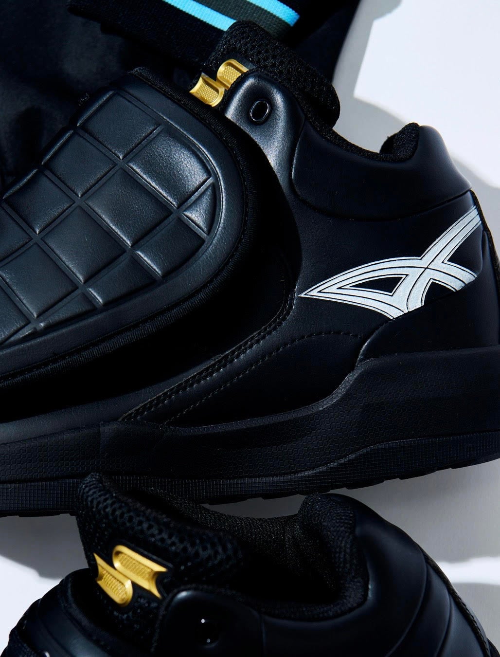 新形状の保護カバーを採用し、足首から甲にかけての防護性を強化しました。ファウルチップや接触による衝撃から足首を守り、安全性を確保します。また、足首をしっかりサポートするミドルカット仕様で、長時間の立位や中腰姿勢でも安定感を維持します。審判特有の細かな動きにも対応しやすく、疲労軽減にも効果的です。デザインはマットなブラックを基調とし、サイドラインをアクセントに取り入れたホワイトラインとシルバーラインの2色展開。落ち着きと機能美を兼ね備えたスタイルに仕上げました。