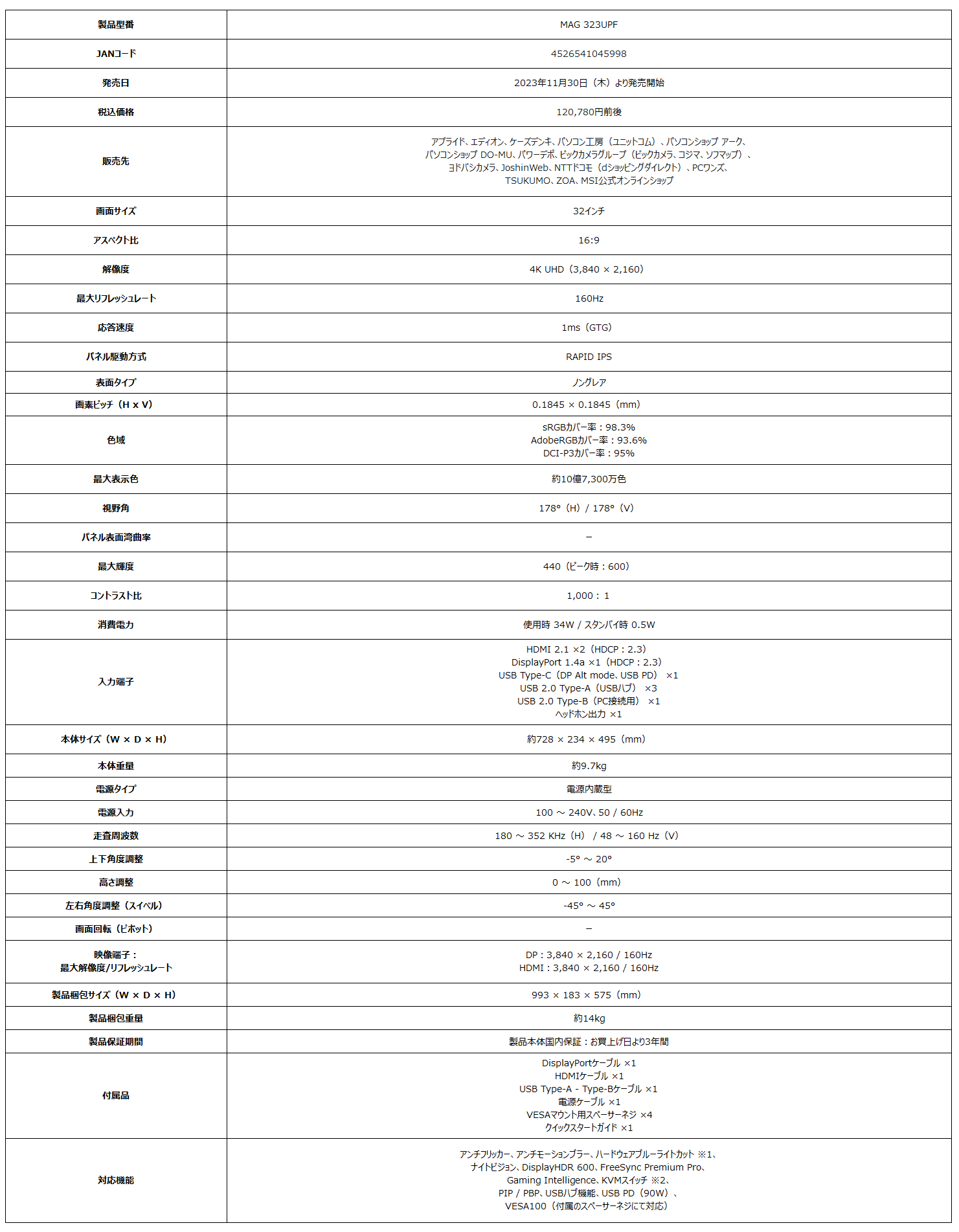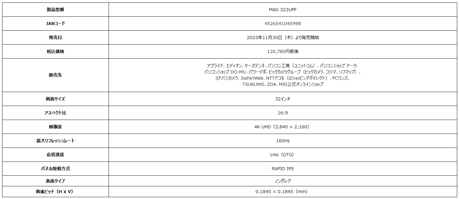 ■ MAG 323UPF製品ページ: https://jp.msi.com/Monitor/MAG-323UPF