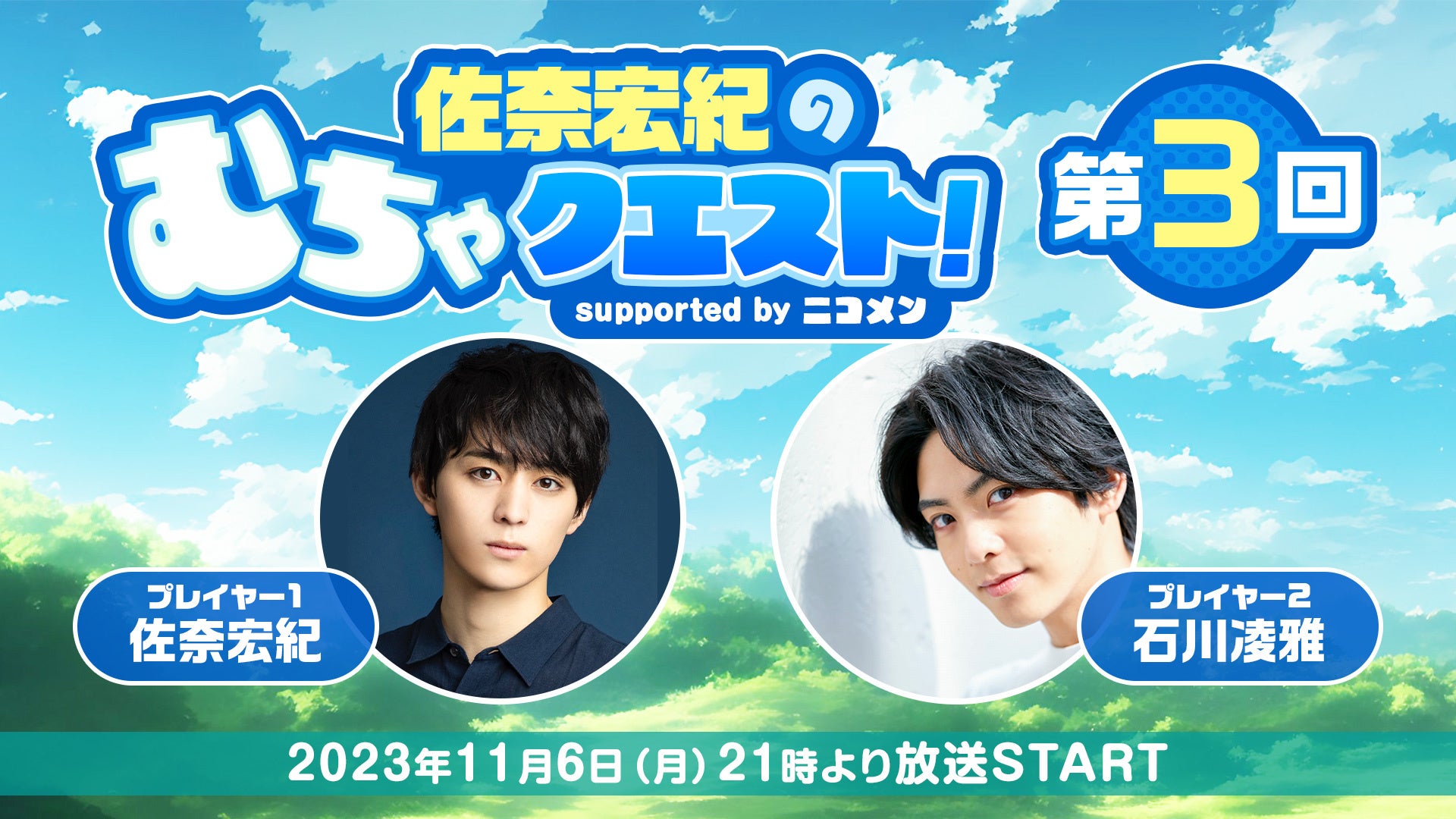 第3回は石川凌雅が生出演。「佐奈宏紀のむちゃクエスト! supported by ニコメン」が、11月6日(月)21時よりニコ生にて放送決定。