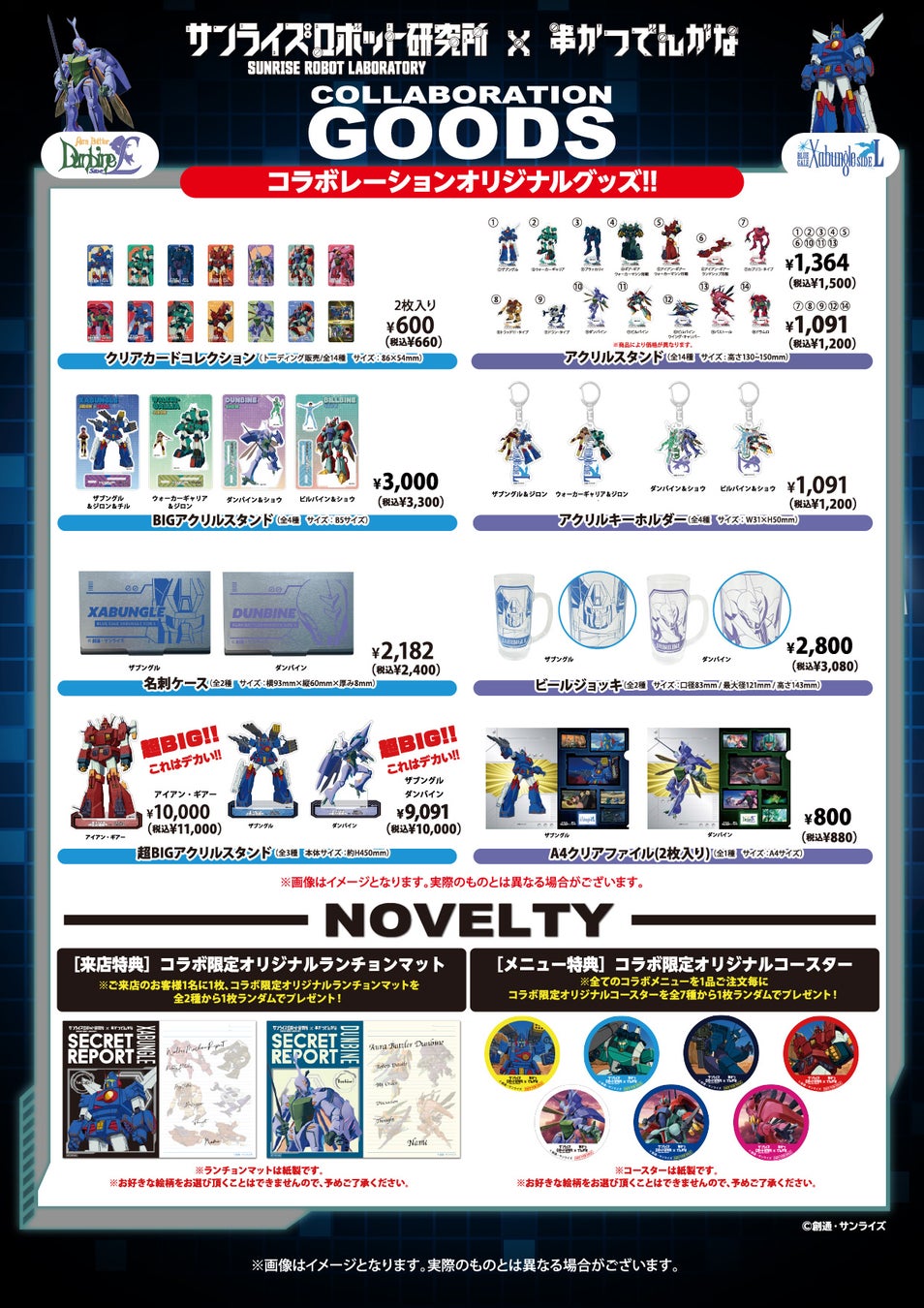 「サンライズロボット研究所」×「串かつ でんがな」の初コラボ 80年代に人気を博した『聖戦士ダンバイン』『戦闘メカ ザブングル』の期間限定メニューや超ビックアクスタなどの初出しコラボグッズを販売!