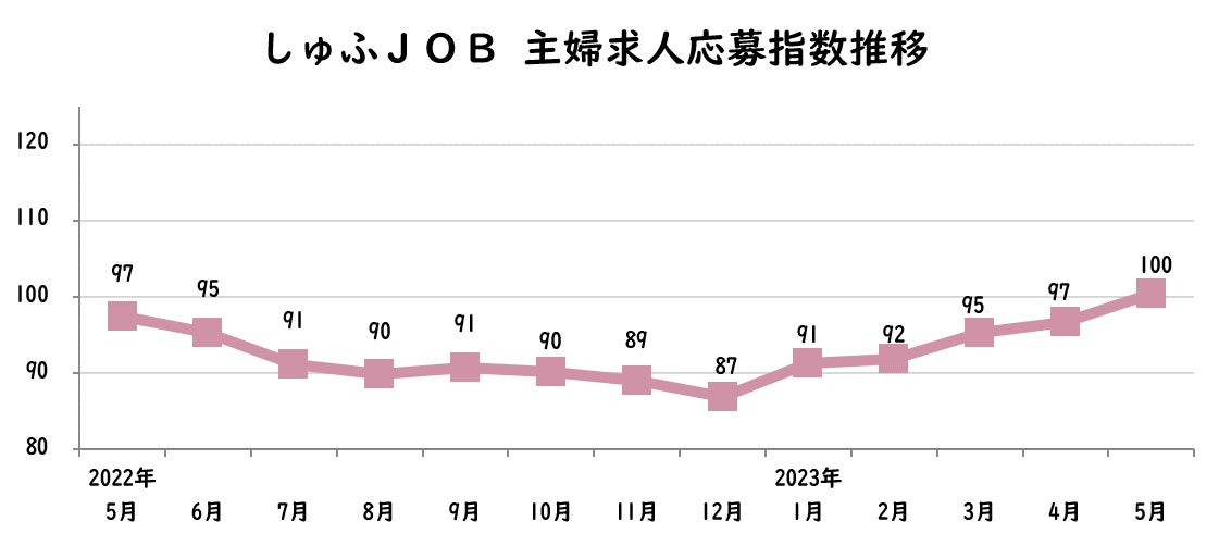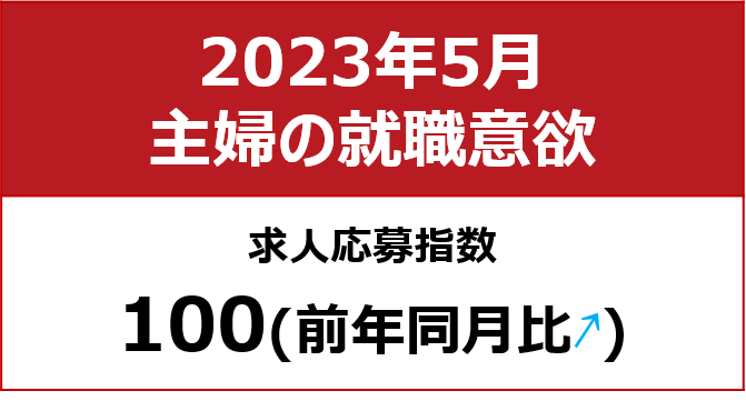【主婦の就職意欲調査 2023年5月】主婦求人の応募指数100(前年同月比+3)