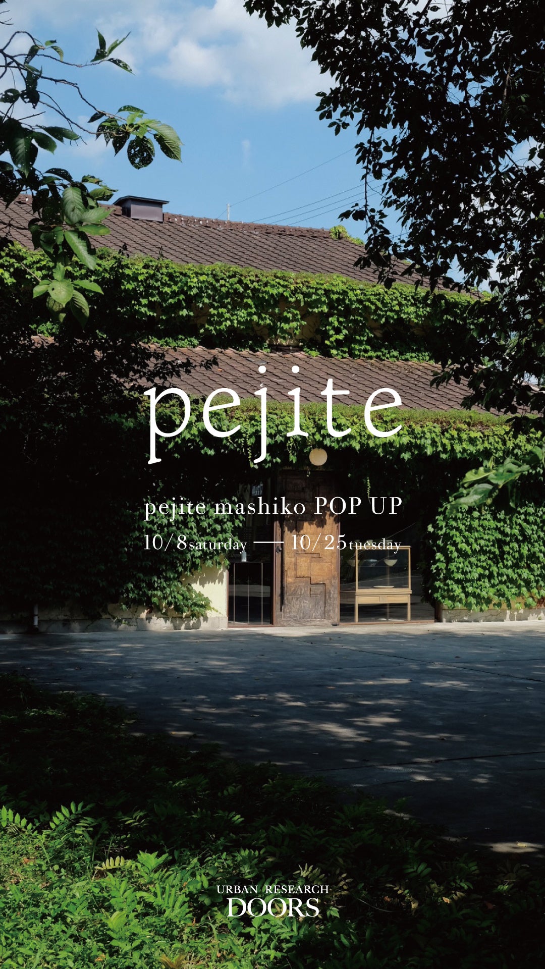 URBAN RESEARCH DOORS(株式会社アーバンリサーチ)は2022 年 10 月 8 日(土)〜 10 月 25 日(火)の期間、大阪 DOORS HOUSE(URBAN RESEARCH DOORS 南船場店併設)にて 「pejite mashiko POP UP」を開催いたします。