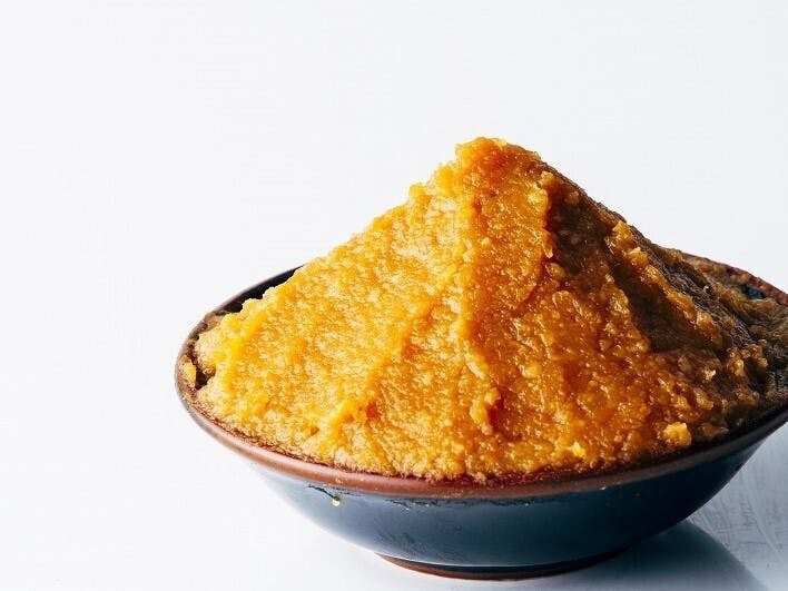 国産大豆と天然水、国産米で仕込み、じっくり杉桶の中で熟成させ、さらにお酒の段仕込みと同じように米麹を加え追麹製法と天地返しを同時に行ったしっかりとしたコクに優しい甘味と香りが上品な、風味の美味しさを求めた甘口糀味噌。木が呼吸をし、そこに住み着いている蔵付き菌がゆっくりと発酵をするため、旨味やコク、香りなど発酵菌由来の成分がバランスよく馴染み、塩角のとれたまろやかな味わいとなります。塩分を控えていながら国産原料のしっかりとした味が、素材の旨味を引き立てます。