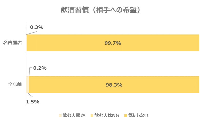 お相手に求める飲酒の習慣についてのデータを見てみると、全店舗とほぼ同様の結果となりました。