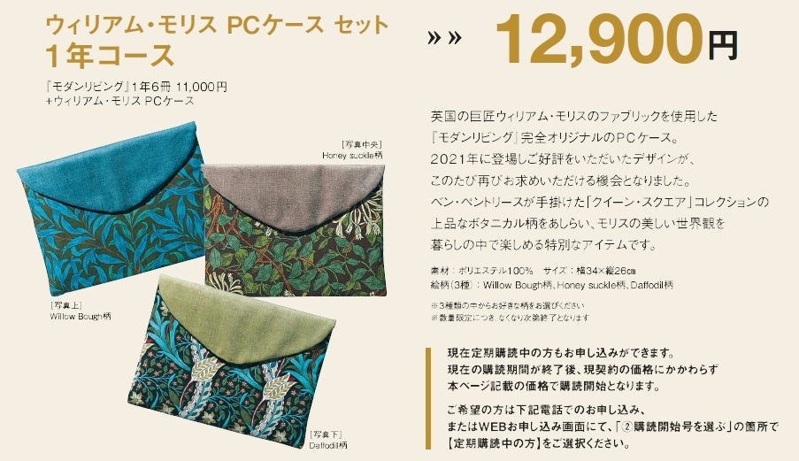 「ウィリアム・モリス」PCケースと定期購読のセットを限定発売!
