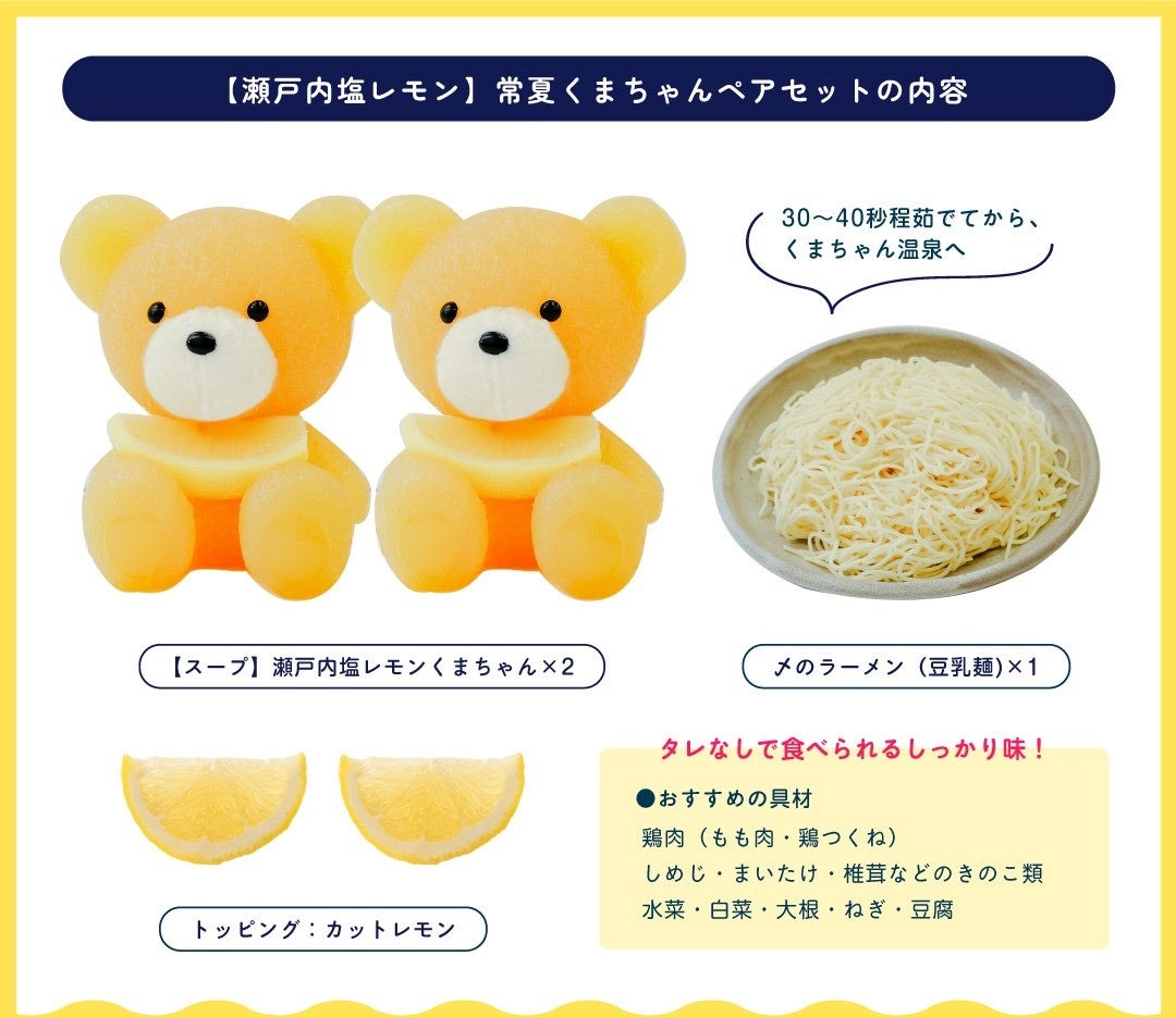 <夏期限定>【瀬戸内塩レモン】常夏くまちゃんペアセット<〆のラーメンつき>