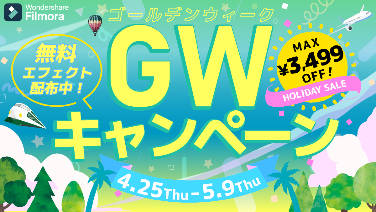人気『動画編集ソフト』Filmora(フィモーラ)がお得に購入できるゴールデンウィークキャンペーン実施中!