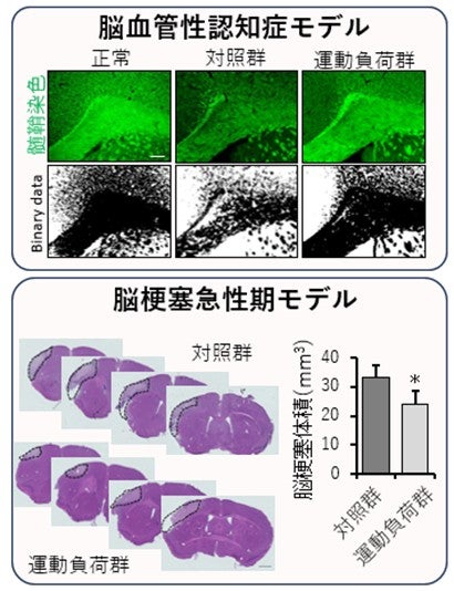 本研究では、マウスを用いた慢性脳低灌流モデル*3(白質障害・認知機能障害モデル)および急性脳梗塞モデルを用い、低強度のトレッドミル運動が脳虚血に与える影響を検討しました。