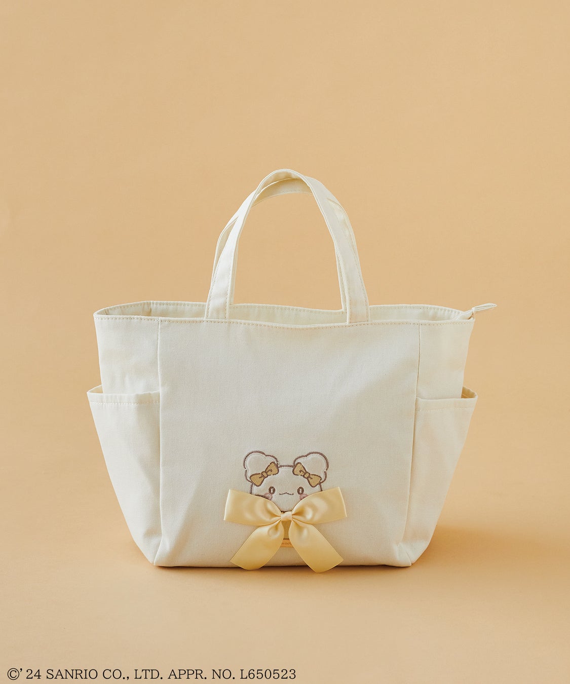 また、帆布素材を使用したトートバッグにはリボンからちょこんと覗く「まるまる」の姿を刺繍し、まるまるをイメージしたアイボリーの毛足の短いファー素材を使用した2Wayミニダブルリボントートをラインアップ。