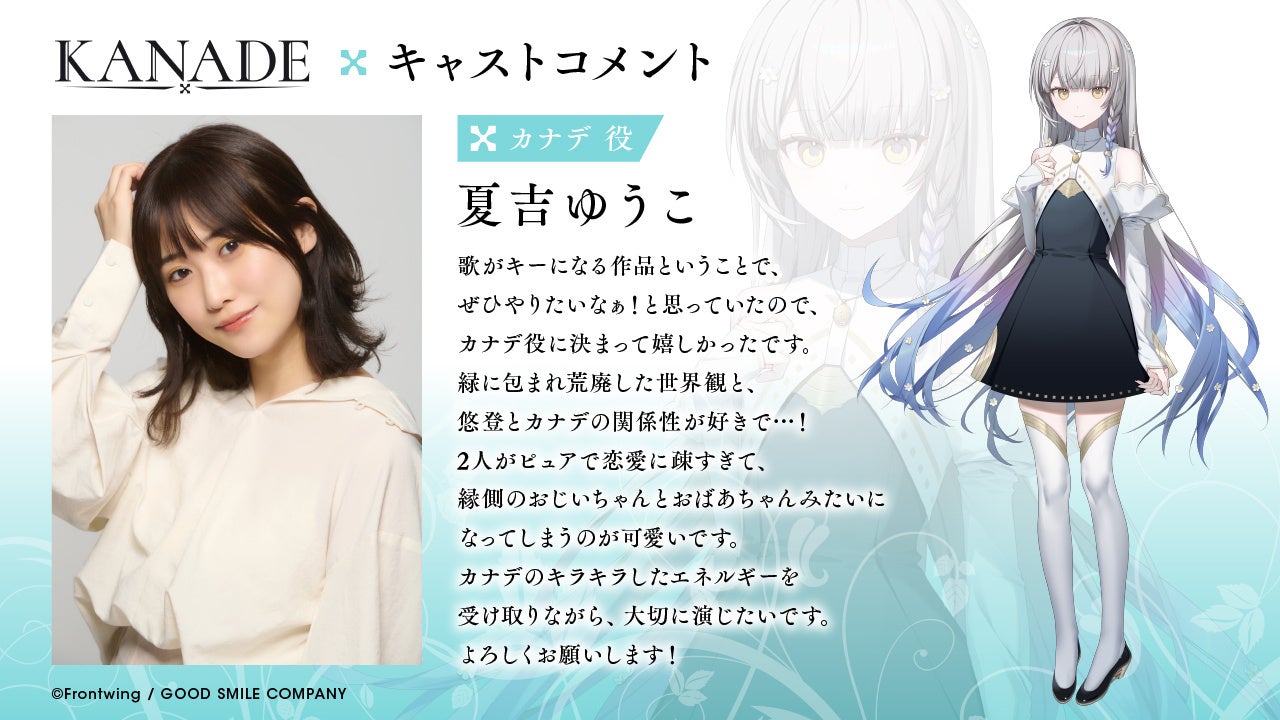 また、本作のヒロインとなるカナデ役に夏吉ゆうこが決定し、OPテーマの歌唱も担当することを発表しました。