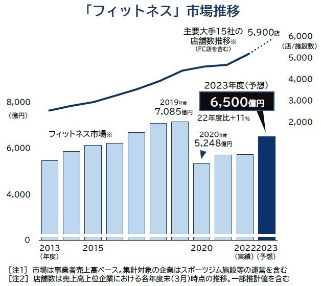 「フィットネス市場」、23年度は6500億円に到達見込み 前年度から10%超の増加