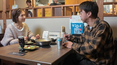 早速注文したもつ鍋のトッピングの‘京の都 もち豚しゃぶしゃぶ‘‘三色京生麩‘が到着。矢作が食べると「唸るうまさだな。この店すごいうまいぞ!」と大絶賛すると安田も「全部美味しいですよね!」と称賛。お酒を飲みながら、話題は安田家の料理事情に。料理をよくするという安田に自身の子供が好きな料理を尋ねると「からあげが好きって言いますね。『ママのからあげ美味しいんだよな~』って言ってくれます。でも長男が『ママのご飯も美味しいけど給食の方がもっと美味しいかなって』」と答えると、矢作は「ちょっと待って、まさかそんなに美味しくないんじゃないでしょうね?」と安田に突っ込み、テーブルは笑顔に包まれる。最後に、〆の‘京都石臼挽き麵‘を食べ「もちもち!うまい!」とこちらも絶賛。番組恒例のお客さんの‘多幸話‘では「キレイな写真が撮影できた」というお客さんが写真を披露。相方の小木の虹に纏わる嘘話を矢作が話し、笑顔につつまれた。