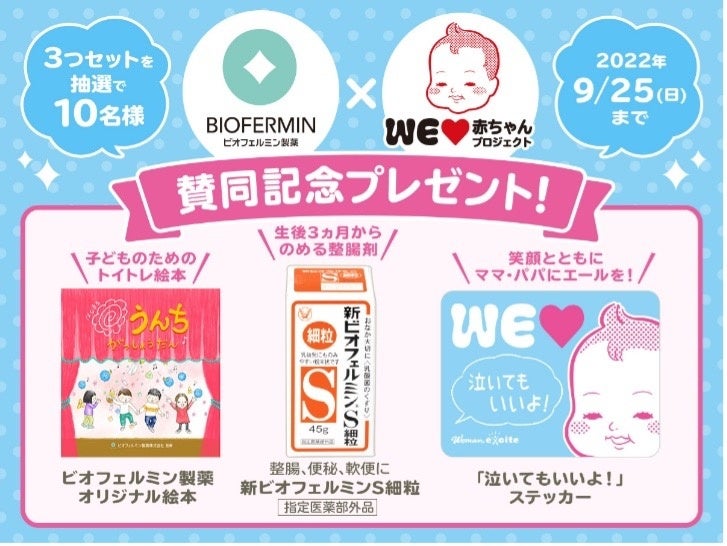 エキサイト株式会社(所在地:東京都港区、代表取締役社長:西條晋一)運営のママ向けウェブメディア「ウーマンエキサイト」が立ち上げた「WEラブ赤ちゃんプロジェクト」に、ビオフェルミン製薬株式会社(所在地:兵庫県神戸市、代表取締役社長:久乗俊道)が賛同しました。