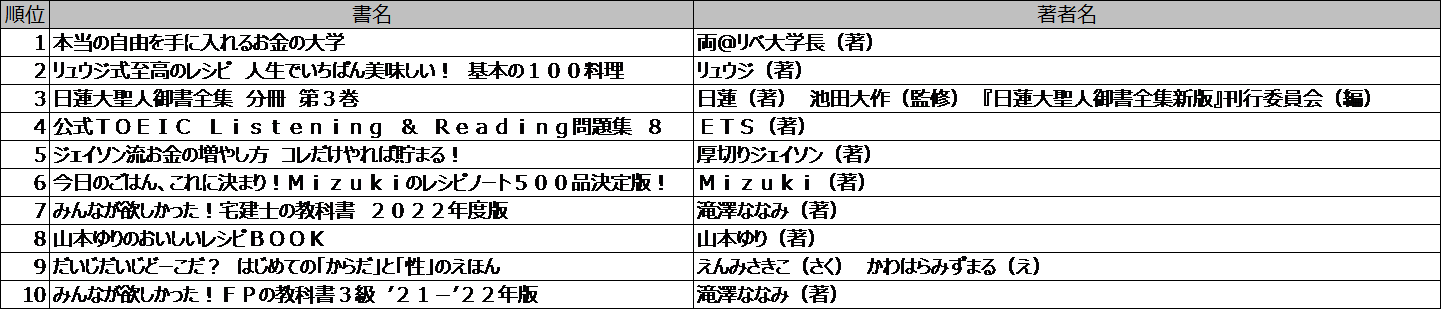 ▼2022年2月 月間ベストセラー(イーブックジャパン調べ)