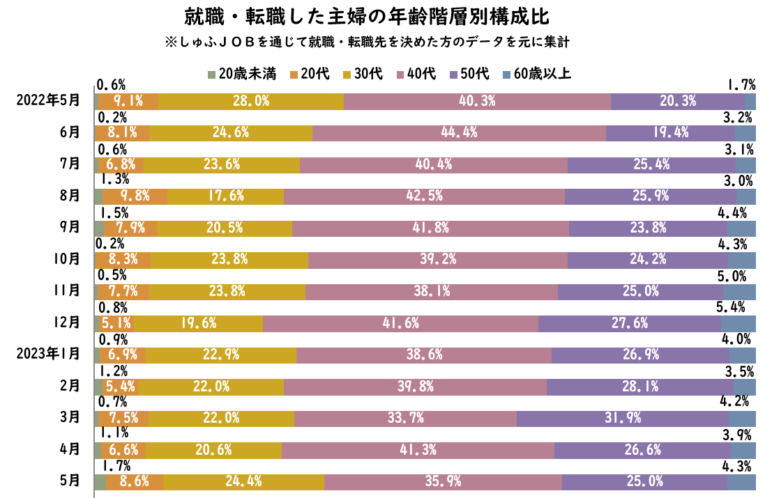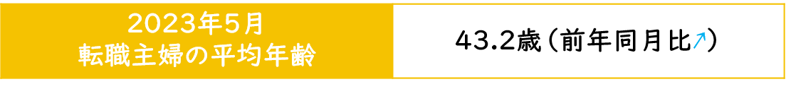 【転職主婦の平均年齢調査 2023年5月】43.2歳(前年同月比+0.9歳)