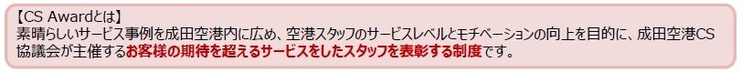 Seasonal CS Award 受賞の中で、特に素晴らしいサービスをした空港スタッフに贈られる「CS Award