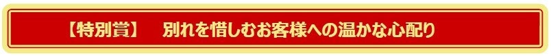 普段からスタッフ間の連携が垣間見える対応や、急いでいる状況でもお客様への気遣いを忘れない姿勢が評価され、受賞に至りました。