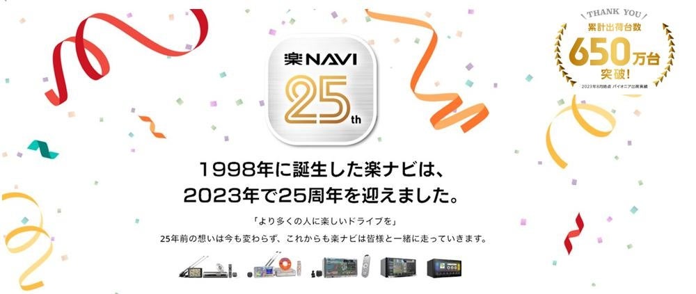 パイオニアが1998年に発売したカロッツェリア 『楽ナビ』シリーズは、今年で発売25周年を迎え、累計出荷台数が650万台を突破※1しました。