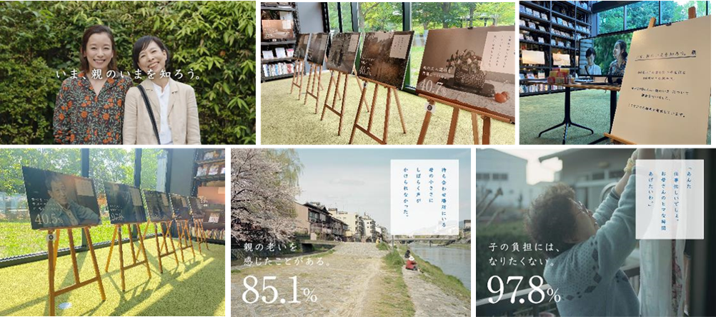 2022年の調査では、「老い」に関する親子の意識や親子間コミュニケーションの実態について調査を行い、「子どもの負担になりたくない親心」(親世代の97.8%が「子どもの負担になりたくない」と答え、48.4%が「子どもの前で元気なふり」をしたことがあると回答。)や、「互いの気遣い故に親の老後に向き合えない」(子世代の75.0%、親世代の81.6%が「親の老後について真剣に話し合った経験がない」と回答。)などの実態が見えました。