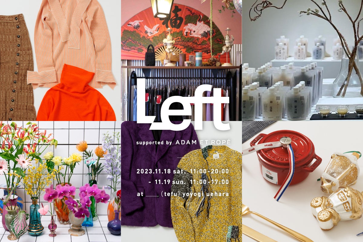 過去にバイイングしたアーカイブアイテムを中心に、ヴィンテージショップ・お花やフードなども楽しめるイベント【Left】を11.18(土)-11.19(日)の2日間、東京/代々木上原の「tefu yoyogi uehara」にて、開催します。