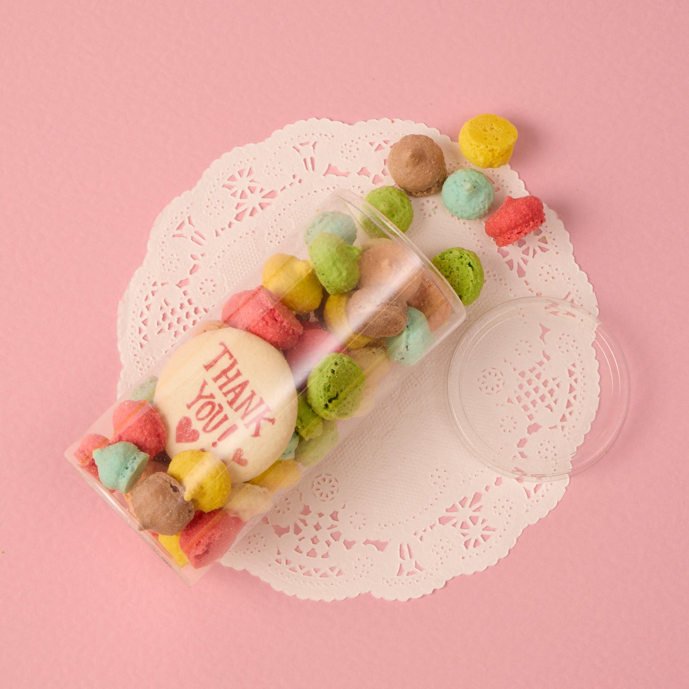 “THANK YOU♡”のメッセージ入りラスクとカラフルなマカロンボーロのセット。