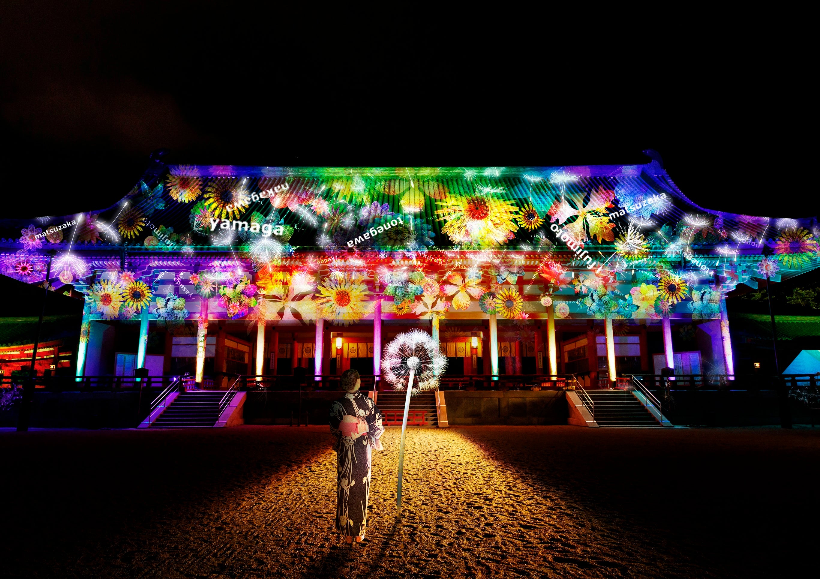 昨年度初開催となった平安神宮で、好評につき今年も開催が決定。昨年度に引き続き、ヨルモウデ仕様の「NAKEDディスタンス提灯®︎」を片手に、他グループとソーシャルディスタンスを保ちながら安心安全に参拝、光のアートに参加いただけます。今年は、村松亮太郎 / NAKEDの世界と平和の願いを届け合う参加型アートプロジェクト『DANDELION PROJECT』が大極殿に登場。平安神宮の象徴であり、重要文化財でもある大極殿から世界へ、平和の祈りが込められた花たちが広がっていく圧巻のアート体験です。