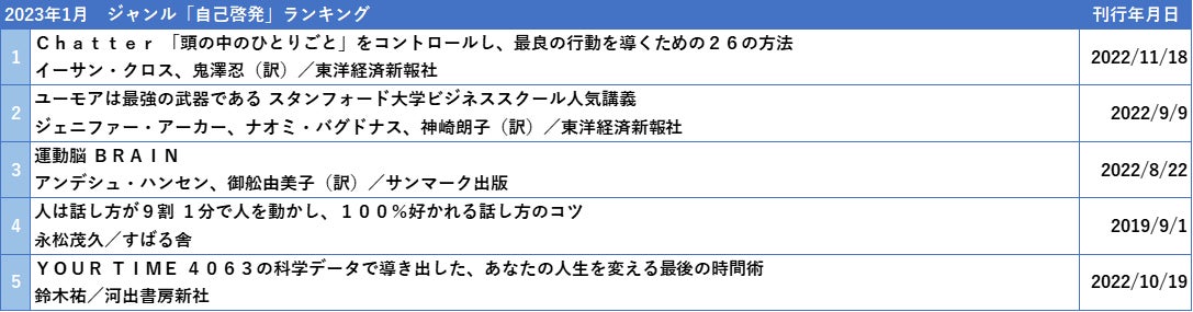 ジャンル「ビジネス実務・自己啓発」 2023年1月の売れ筋タイトル(20~30歳)