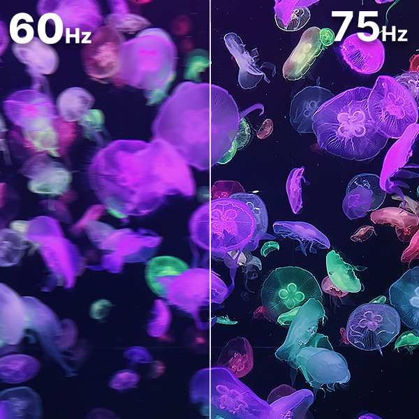 75Hzのリフレッシュレートは一般的な60フレームのモニターと比べると目の疲れが軽減されます。