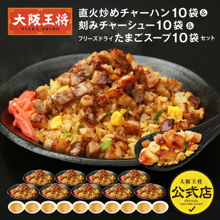 直火炒めチャーハン10袋&刻みチャーシュー10袋&たまごスープ10袋セット